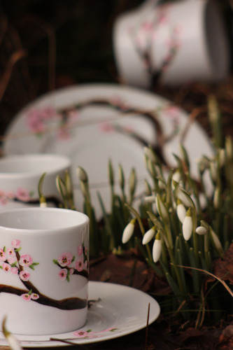 Det er alltid vår når du brukar desse 6 kaffikoppane! Måla med motiv av japansk kirsebærblomar på både koppar og tefat. Desse koppane kjem i ei trekasse, så det er trygt og praktisk å lagre dei.