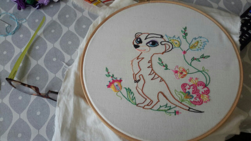 Utforma til eit dyrehageinspirert barnerom. Eg brukte blomemønsteret dei hadde valt til sengetøy i krybba som inspirasjon til å lage dei frihandteikna blomane.