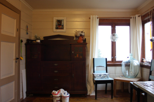 Etestova mangla personlegdom fordi gamle hol vart brukt til å henge bilete, og rommet var så mørkt. No, med ny lys måling og friske kvite vindauge, er den gladare og opnare.